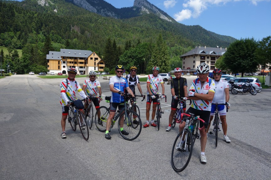 Après un rassemblement à la barrière de Moirans et à Voreppe pour notre Zident, nous voilà parti pour le col de la Placette, nous retrouvons Alain L.au sommet, un arrêt s’impose puis direction St Laurent du pont, Berland, le Pas du Frou, St Pierre d’Entremont, pause pour regroupement et prendre des forces pour attaquer le fameux col du Cucheron ou chacun monte à son rythme, après un arrêt bien mérité pour tous nous descendons sur St Pierre de Chartreuse ou la pause casse-croûte fait parti du menu du jour, achats pour certain à la boulangerie et arrêt d’environ 1/2 heure puis départ pour le col de Porte par la route normale et la même chose avec un regroupement au sommet, les visages un peu fatigué pour tous nous rentrons par Sarcenas, la remonté pas facile sur Quaix et descente difficile sur la Montat puis retour par le Fontanil-Voreppe-la piste, Alain L. nous accompagne jusqu’au déversoir; séparation à la barrière de Moirans : Erik-Oreste-et Jésus passent par St Quentin et Jean C, Guy, Alain J., le Zident et moi-même nous passons par la plaine.