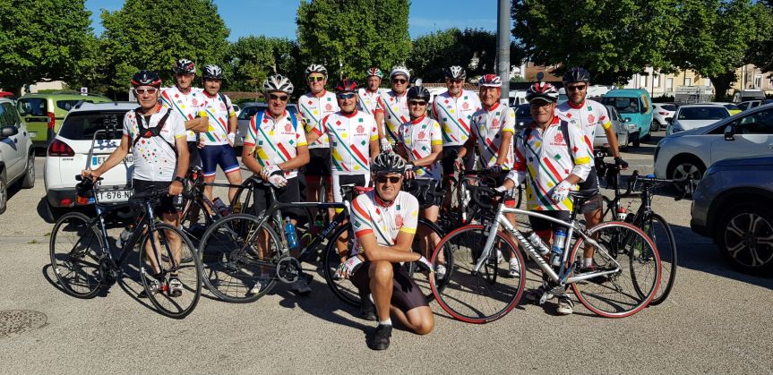 En ce premier samedi de juillet,nous nous sommes déplacés vers le sud avec une approche en voiture jusqu’à Crest en Drôme provençale.Nous avons réussi à caser les 14 participants et leurs vélos dans les véhicules de Dom,Alain,J Pierre,Oreste et Titi.Avec Guy,Jésus,Daniel,les 2 Michel,Erik,Jean Luc,Nello et bien sûr Nathalie le groupe a démarré vers 9h de Crest par un temps magnifique.Les températures agréables et supportables le matin sont devenus l’après midi bien estivales et ont généré quelques légères défaillances!!.