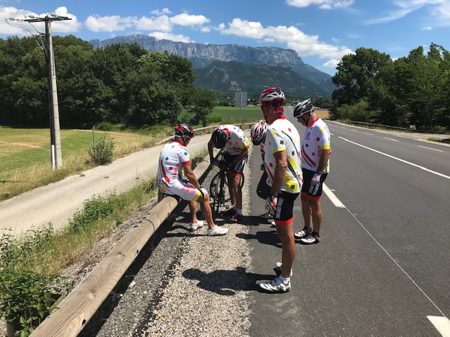 Les plus affĂ»tĂ©s ( Erik B, Dominique F, Guy D, Jean Luc S et Oreste) enchaĂźneront les 3 cols …Le reste de la troupe roule au feeling et nous verrons bien au fil des kms comment nous dessinerons la suite du parcours …