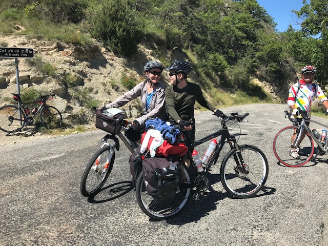 C est sous un soleil de plomb que nous montons jusqu au col de La Croix oĂč nous feront la connaissance d un couple de cyclo trĂšs sympathiques venu de Suisse pour une rando vĂ©lo sacoches de 4 jours …