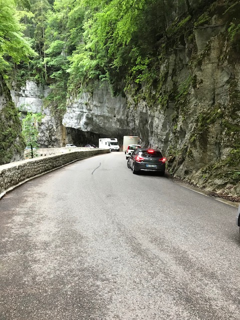 Le soleil devrait pointer le bout de son nez à là mi journée , mais pour l instant c est dans une atmosphère presque hivernale que nous prenons la direction de St Gervais pour une ascension dans un cadre magnifique qui nous emmène dans le canyon des Ecouges , où nous traverserons un tunnel grâce à nos éclairages d appoint prévu pour cette occasion. Éclairage indispensable pour accéder au reste du parcours qui nous emmènera dans un brouillard assez dense jusqu’ au col de Romeyere.