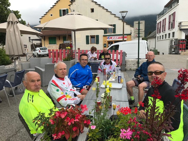 Au fil des kilomètres , naturellement 2 groupes se sont formés … le premier groupe composé de Thierrry Blaive , Thierry Jacquemet, Jean Luc Semanaz , Oreste Orsini, Jean Pierre Tavel, Guy Dechamboux , et Erik Burdet . fera une boucle d environ 130 kms avec 2300m de dénivelés , et mon groupe composé d Alain Laroche, Dominique Pierrot, Philippe Zorzan , Daniel De Sousa , Frederic Serillon, et Alain Julien pour une boucle d environ 110 Km et 2000m de dénivelé .