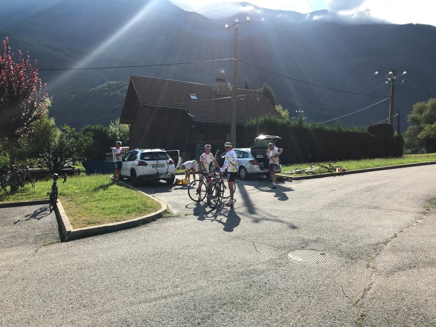 Il est environ 7H30 lorsque nous prenons le départ en voiture depuis le péage de St Quentin sur Isère, direction St Paul d’Isère en Savoie. Apres environ une heure trente de voiture, nous sommes prêt à prendre la route à vélo direction Courchevel en passant par Aigueblanche, Moutier, Bozel… Notre peloton sera composé de Thierry Blaive, Oreste Orsini, Dominique Fournier, Guy Dechamboux, Erik Burdet, Jean Luc Samanaz, Dominique Pierrot, Jean Pierre Tavel, Michel Berthet, Alain Laroche, Michel Clément et moi-même.
