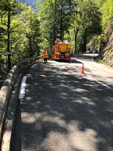 mais malheureusement dans la foulée , passe devant nous toute sirènes hurlantes , 1 puis 2 camions de pompiers ainsi qu’un véhicule de gendarmerie …