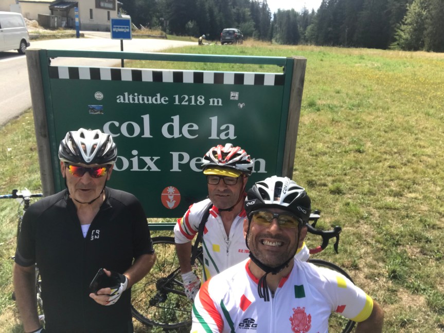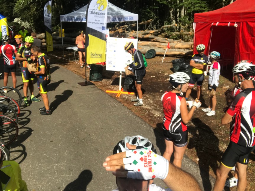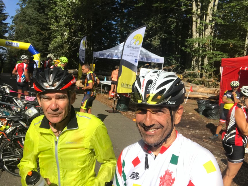 En haut du col nous aurons droit à un bon petit ravitaillement qui nous mettra en forme pour poursuivre notre route. Nous seront 5 a descendre sur le col de Romeyere car Guy a pris la poudre d escampette😊 en haut du col …
