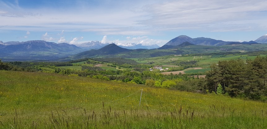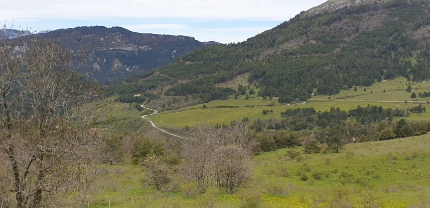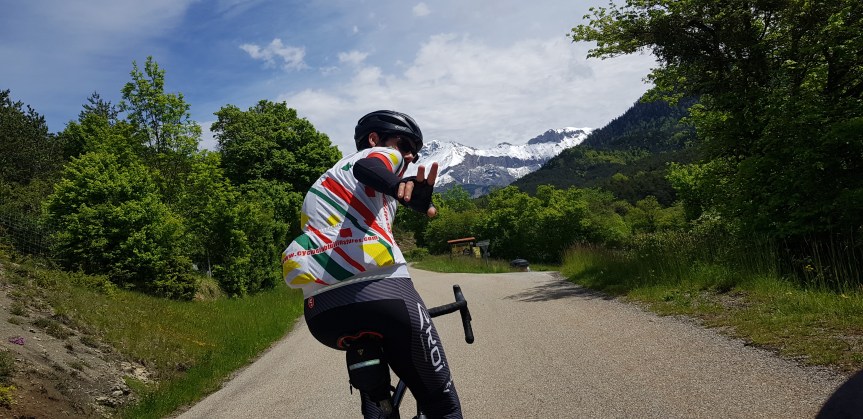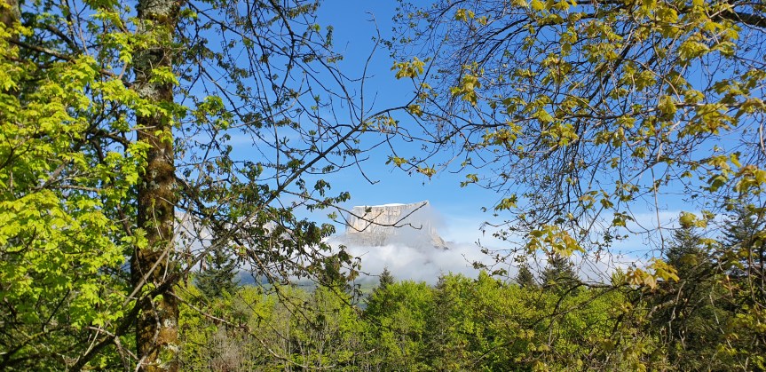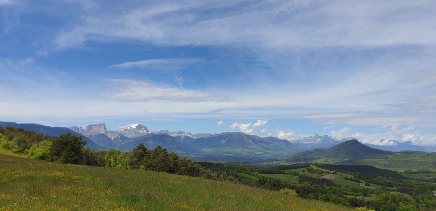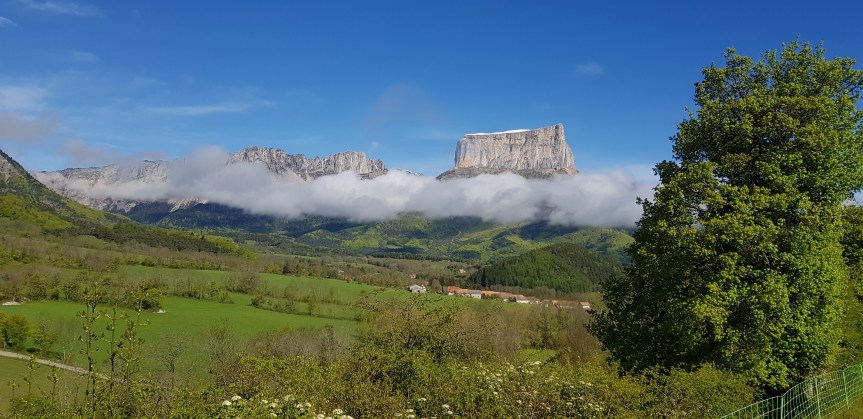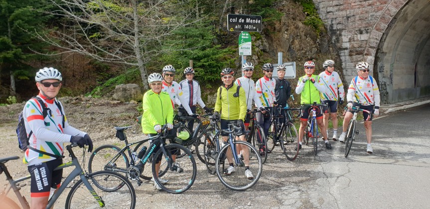 Partis de la gare de Clelles,nous avons fait une boucle de 92km avec 1900m de D+;col du Prayer,col du Menée,descente réfrigérée vers Chatillon en Diois,puis les magnifiques gorges des Gats avant de remonter par Glandage et le col de Grimone.Courte descente pour rejoindre la RN 75 toujours aussi surchargée de véhicules en ce weekend de pentecôte.Heureusement pas pour longtemps puisque dans la descente nous avons bifurqué à droite pour une traversée du Trièves par Lalley,le col du Banchet,Mens et retour sur Clelles.